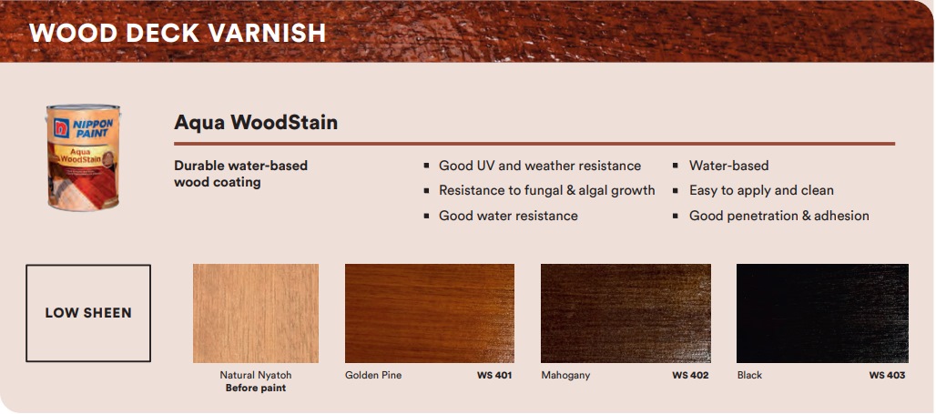 ** 5 Litre can available: Nippon Paint Aqua Woodstain 1L