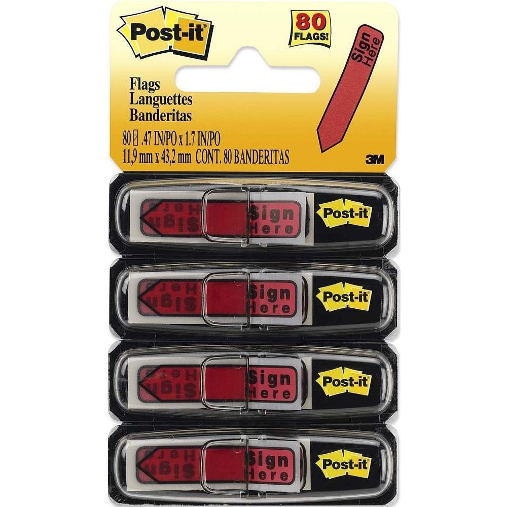 3M POST-IT ARROW FLAGS SIGN HERE (80SHT) 0.47"X1.7" 684-RDSH