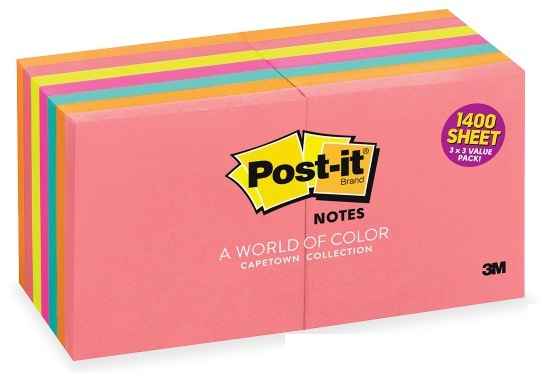 3M POST-IT CAPE TOWN COLLECTION NOTES CUBE 3"X3" (14PAD/PKT) 654-14AN