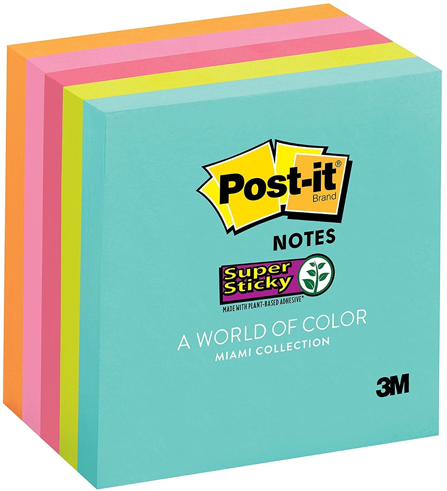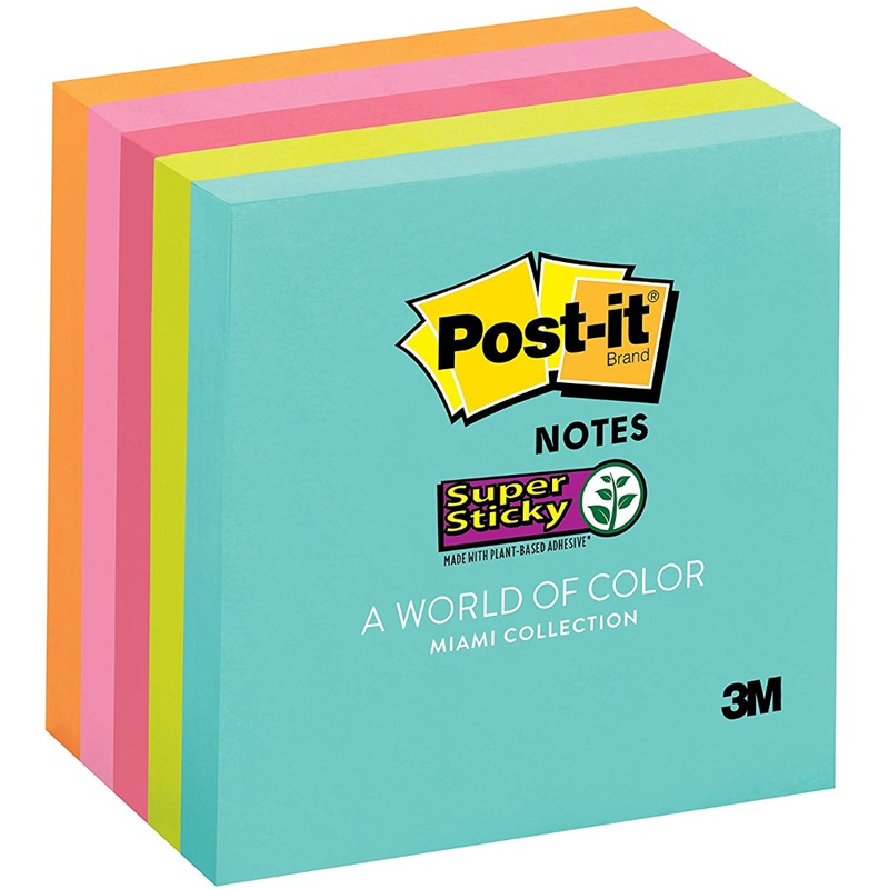 3M POST-IT SUPER STICKY MIAMI COLOUR NOTES 3"X3"(90'S/PAD) 654-5SSMIA