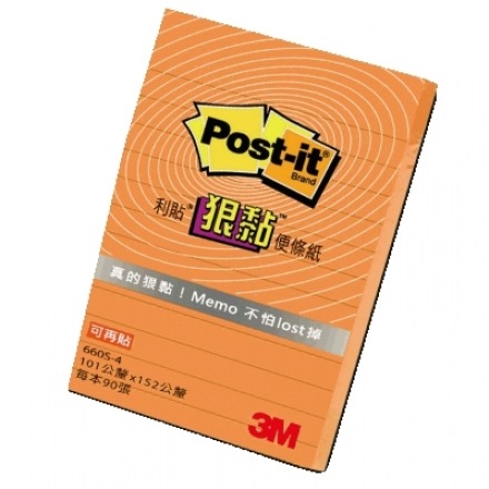 3M POST-IT SUPER STICKY ORANGE LINED 4"X6" (90'S/PAD) 660S-4