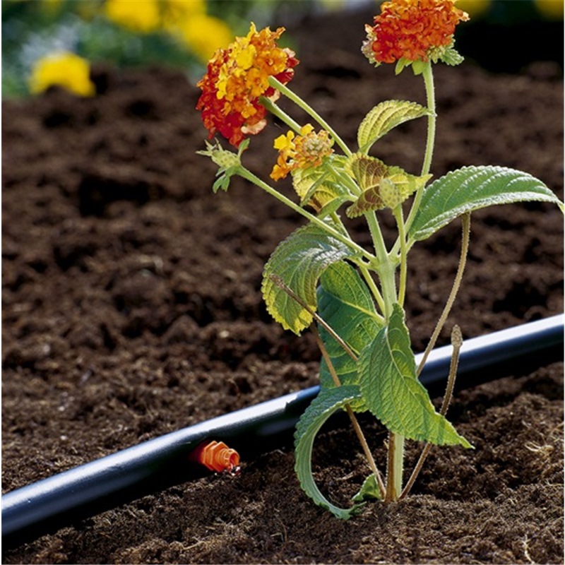 For the irrigation of single standing plants, the Endline Drip Head is twisted into the end of a (3/16 inch) Supply Pipe.