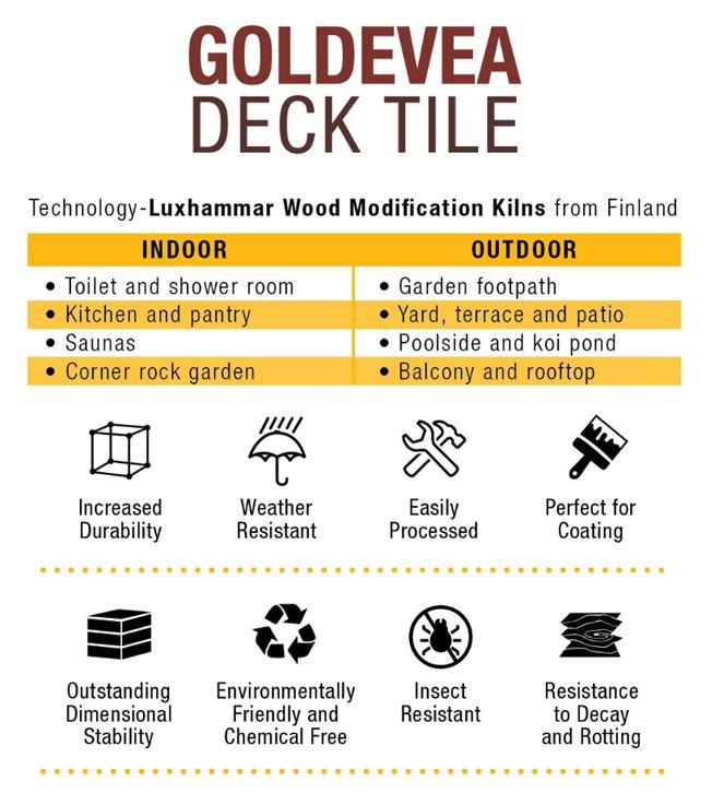 GOLDEVEA DECK TILE 300MMX300MMX30MM (0.09M2) - ODT30030SPB 6-PCS