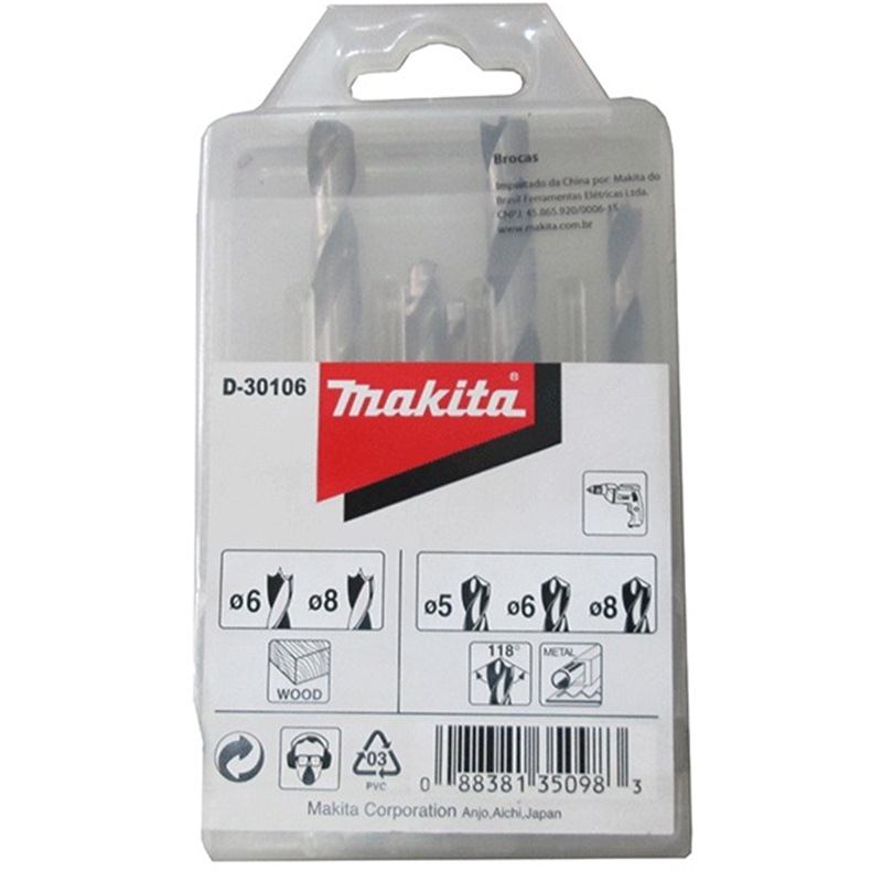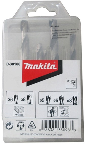 MAKITA ASSORTED DRILL BIT SET 5PCS (5 6 8 FOR METAL) & (6 8 FOR WOOD) D-30106