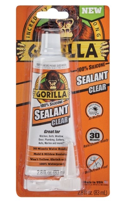 Gorilla Waterproof Caulk & Seal 100% Silicone Sealant* seals out water, air and moisture and is great for kitchen, bath, window, doors, auto, marine plumbing, gutters and more! Ready for water exposure in just 30 minutes, this waterproof sealant is mold & mildew resistant. The clear silicone sealant won't yellow, shrink or crack over time
