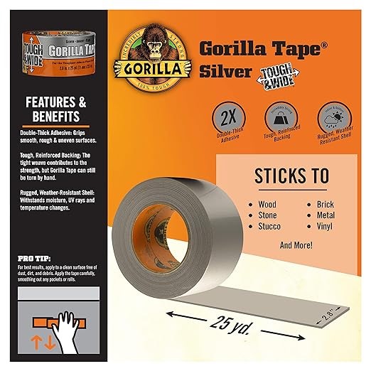 Gorilla tape is rugged and has a weather-resistant shell that withstands moisture, UV rays and temperature extremes making it perfect for both indoor and outdoor use