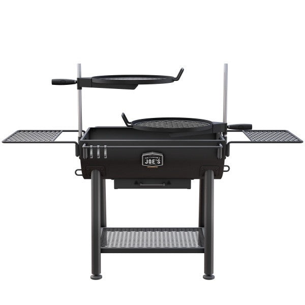 • BOTTOM SHELF: Bottom shelf to keep extra wood or cooking utensils close-at-hand