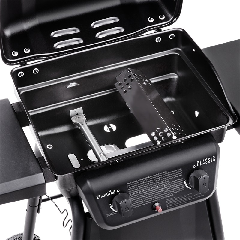 The Classic 2-burner gas grill is perfect for the smaller cookout.