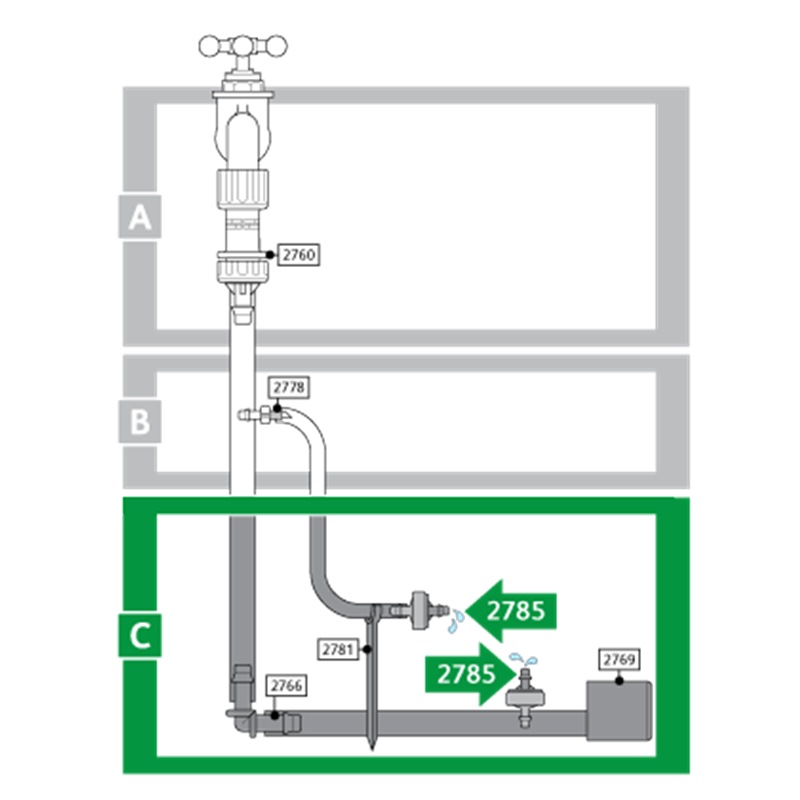Can be inserted directly unto 13mm hose or end of line for 4mm hose.