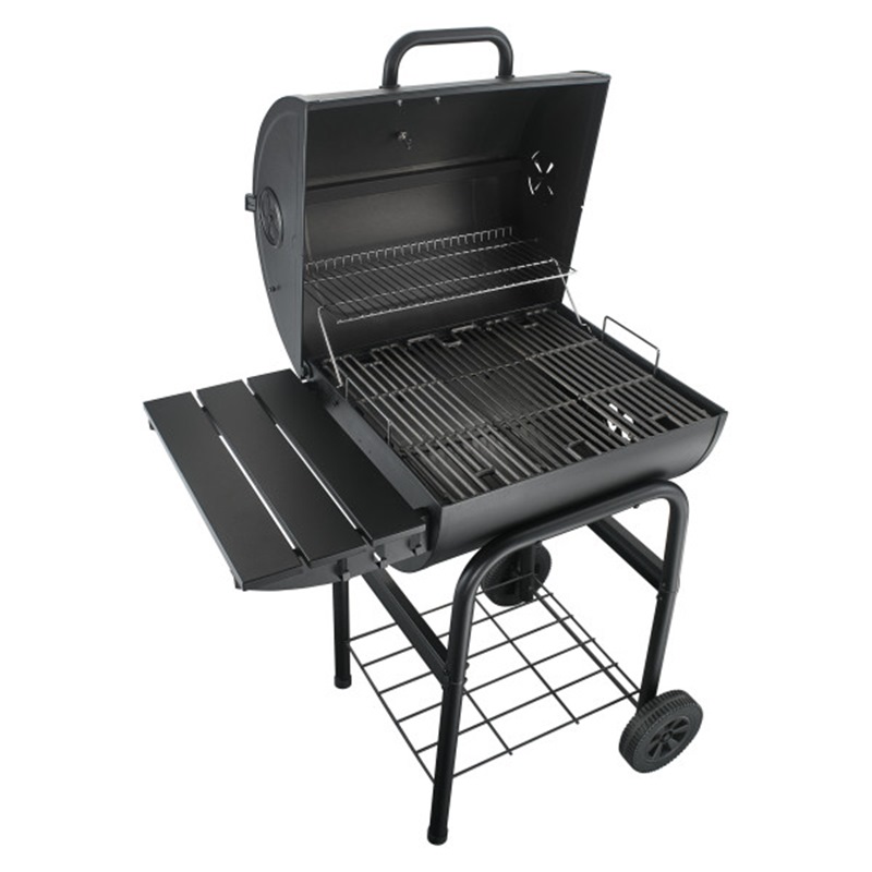 With features including a side shelf that provides plenty of space for prep work and a slide out charcoal drawer that allows for easy fuel access and clean-up, the quality materials and sturdy construction of the American Gourmet ensures that your grill is made to last.