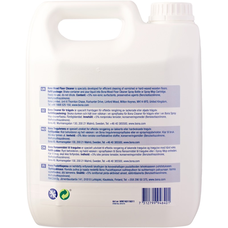 Bona Wood Floor Cleaner Refill 4L is specially developed for efficient cleaning of varnished or hard-waxed wooden floors.