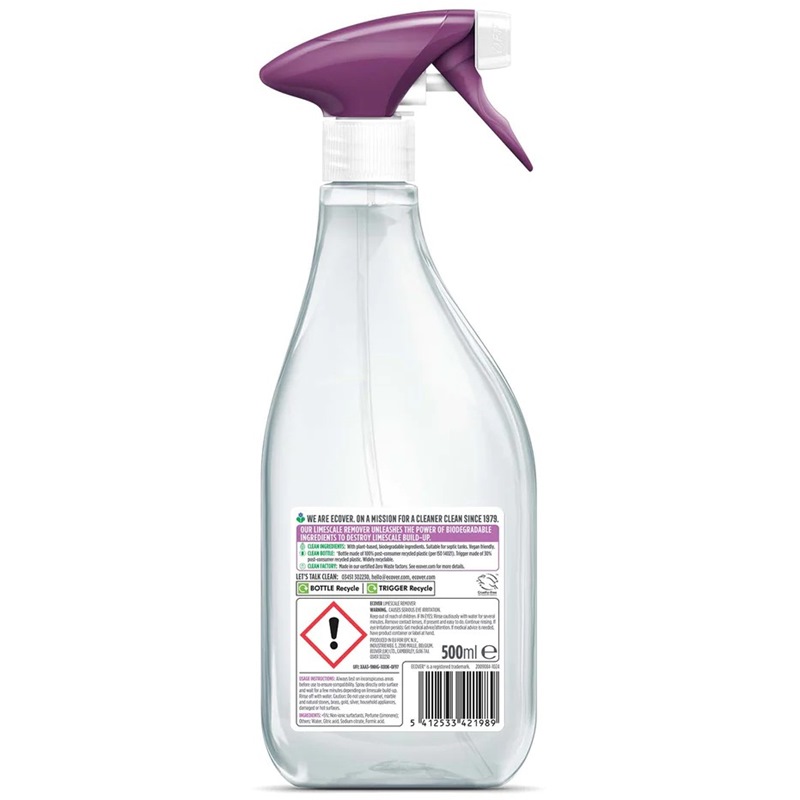 Ecover Limescale Remover clever foaming action sticks to surfaces, so there is nowhere for limescale to cling to.