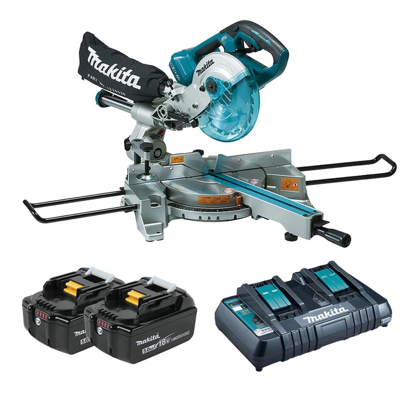 Home » Light Machinery » Cutting & Sawing Machines » MAKITA 36V (18V+18V) 2X5.0AH LI-ION 190MM (7-1/2") BRUSHLESS SLIDE COMPOUND SAW, DLS714PT2