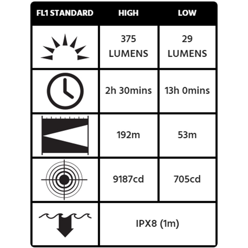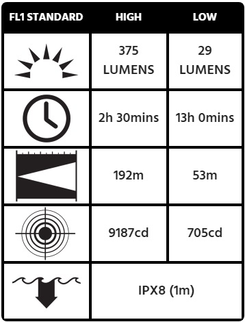 With the included 29 lumen low beam a run time of up to 13 hours will support close up use and any extended time needs.