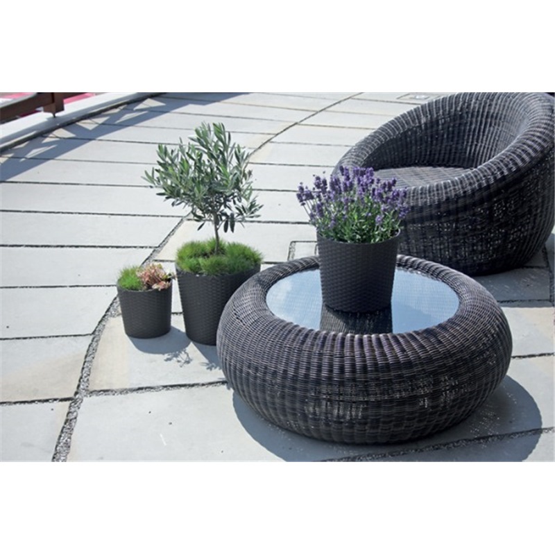 Rato tubus round, slim plant pot from the Rato line, with texture closely resembling natural rattan weave. Functional, of a warm exotic character, the product creates a great addition to stylish interiors, terrace or porch ornamental arrangements, winter gardens, restaurant or cafe patios, and beer gardens. Comes with an insert.