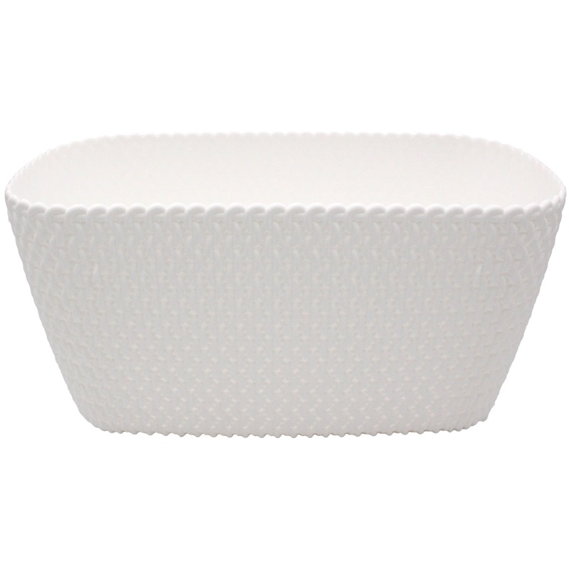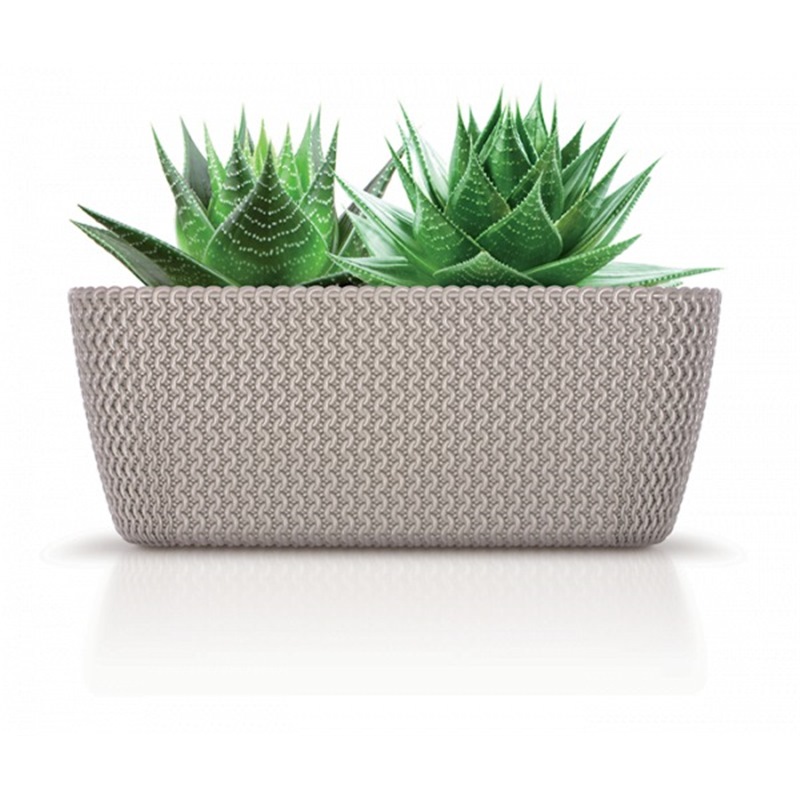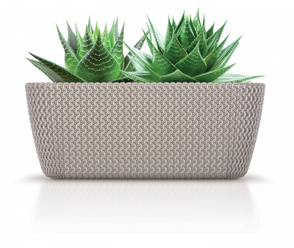 An oval planter box with an extremely attractive decorative motif, faithfully imitating a knitting weave of thick, soft yarn. Placed on the kitchen countertop or on a windowsill, it will certainly make the surroundings more attractive. Available in 2 Colours: Gray Stone and White.