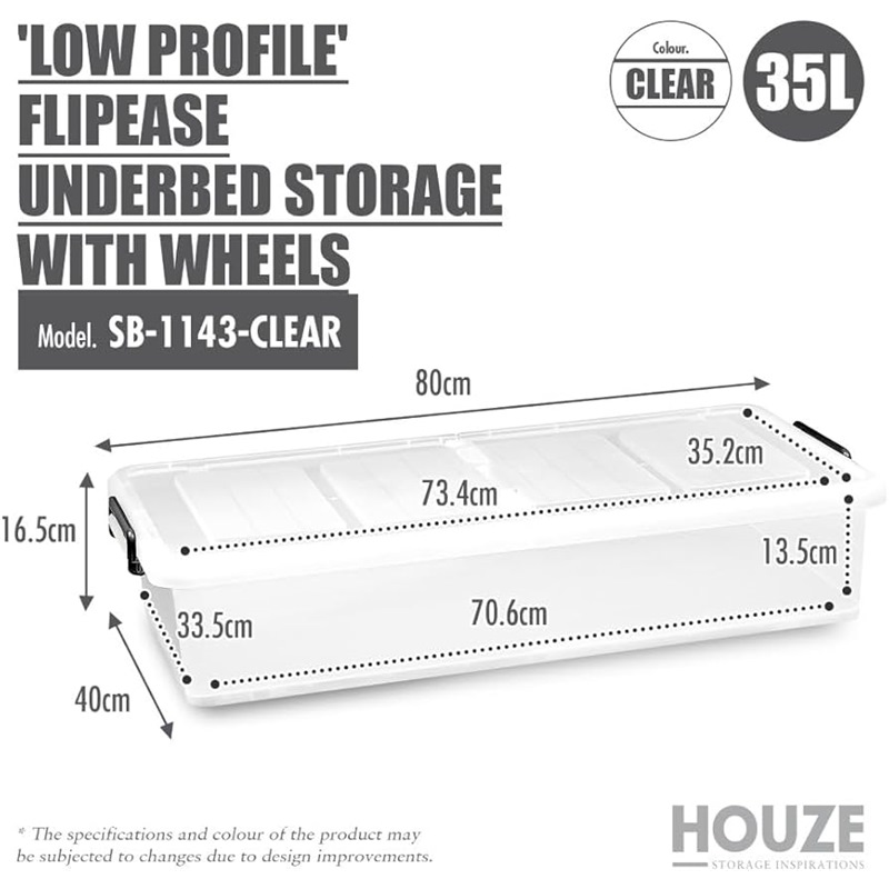 HOUZE 35L FLIPEASE UNDERBED STORAGE /W WHEELS (CLEAR) SB-1143-CLEAR