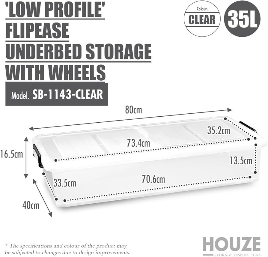 Home » Ladders, Trolleys & Storage » Storage Boxes & Plastic Containers » HOUZE 35L FLIPEASE UNDERBED STORAGE /W WHEELS (CLEAR) SB-1143-CLEAR