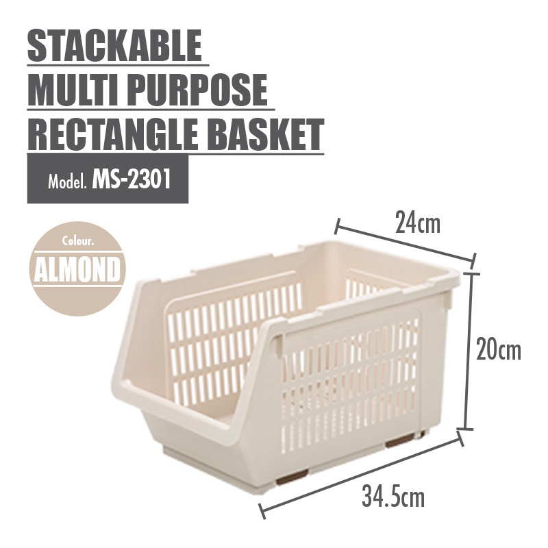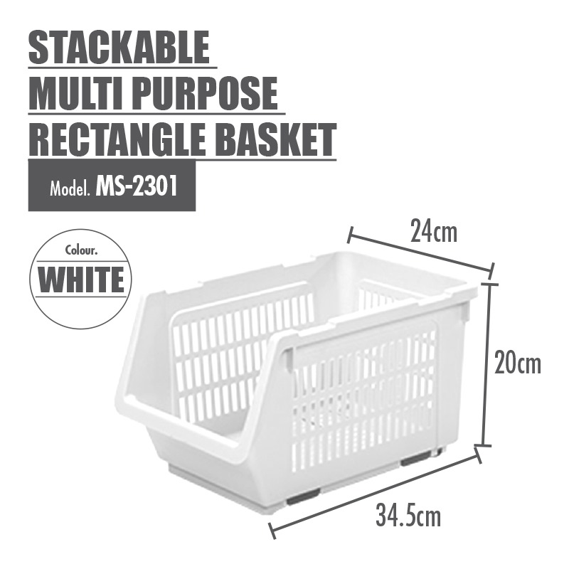 HOUZE STACKABLE M.PURPOSE RECTANGLE BASKET-L34.5*W24.0*H20CM MS-2301