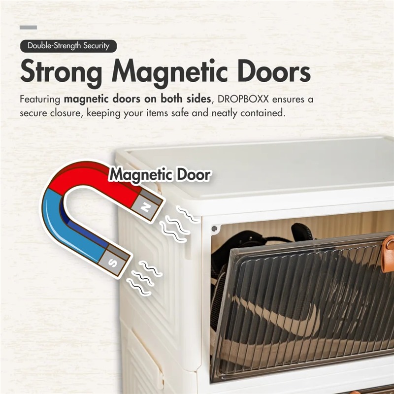Featuring magnetic doors on both sides, DROPBOXX ensures a secure closure, keeping your items safe and neatly contained.