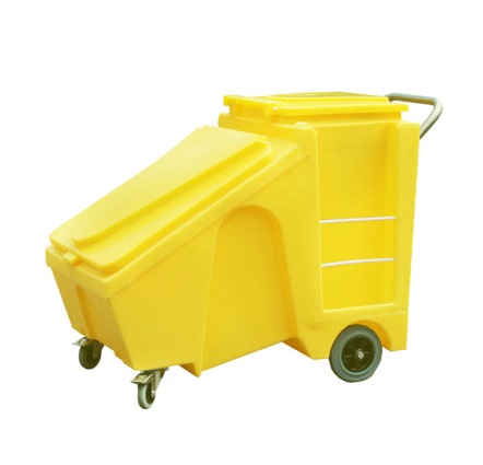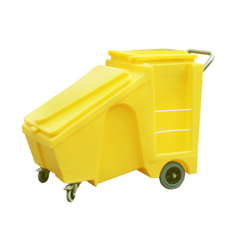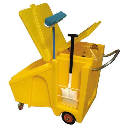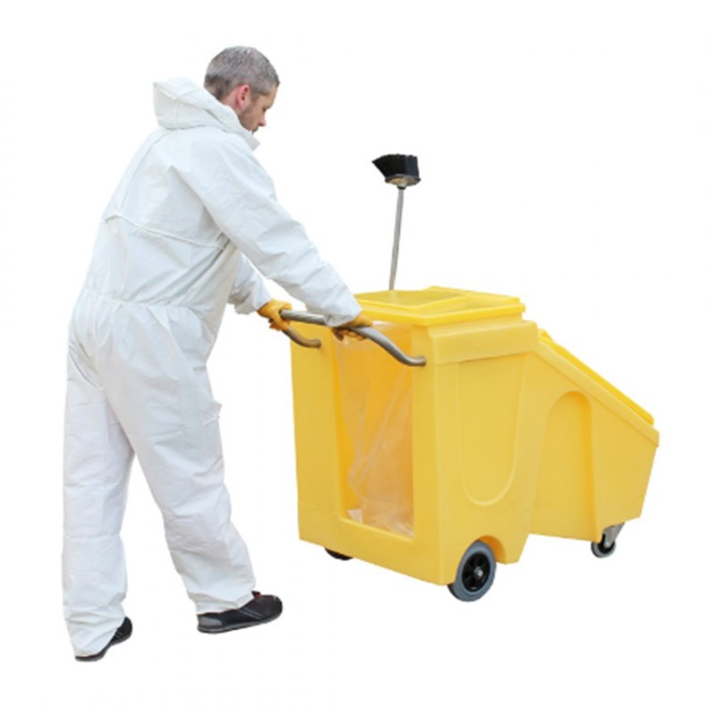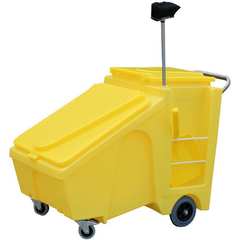 Transport and dispense loose spill clean-up granules, or salt for de-icing paths etc. from this highly manoeuvrable cart which is fitted with front swivel brake castors and fixed back wheels.