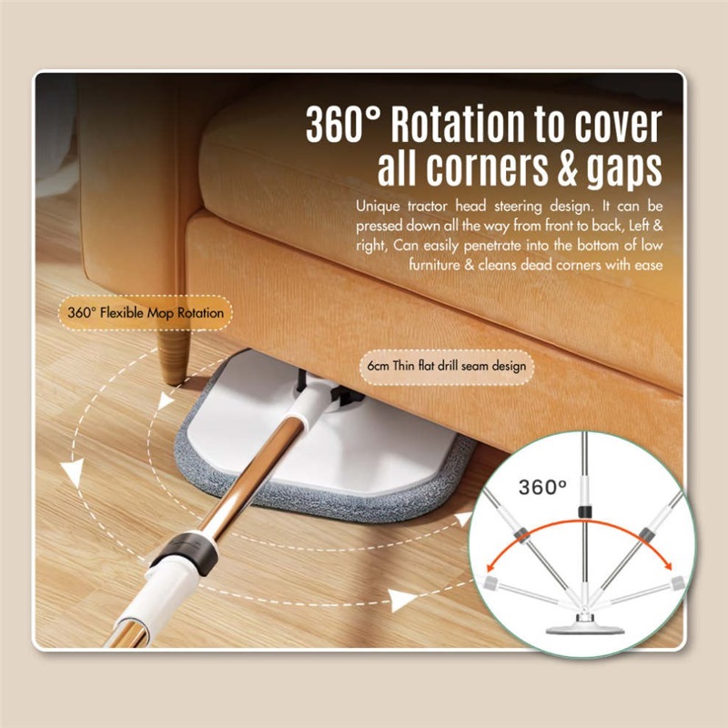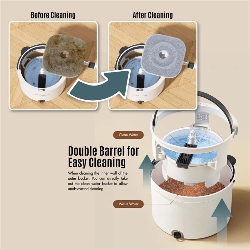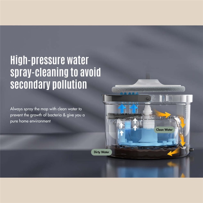 Say goodbye to the hassles of traditional mopping with the HOUZE - PANDY Spin Mop Set's dual-bucket system. This innovative feature allows you to separate clean and dirty water, drastically enhancing your cleaning efficiency and reducing effort. The 2.5L capacity, Square Mop Plate, and Refill Pads make this set a complete solution for all your cleaning needs.