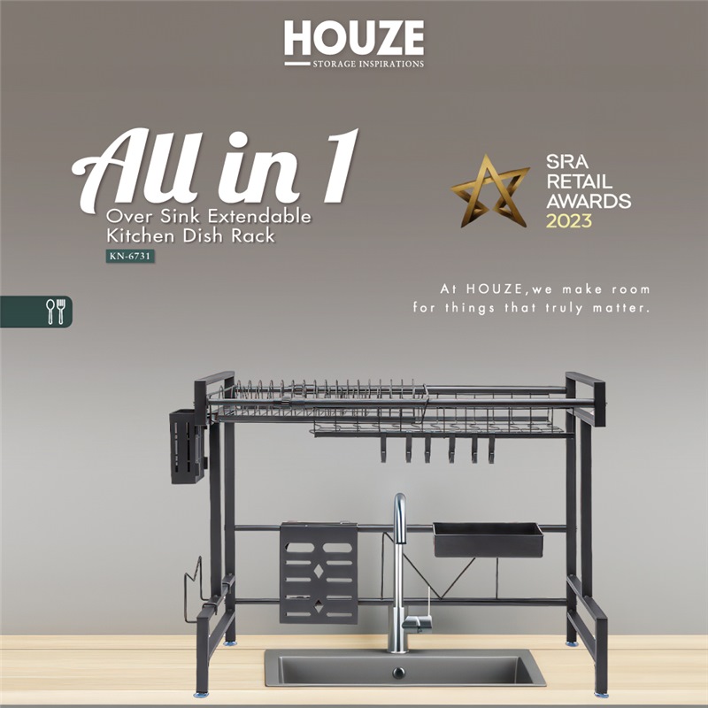 Home » Bathroom & Kitchen » Kitchen Accessories » HOUZE ALL IN 1 OVER SINK EXTENDABLE KITCHEN DISH RACK KN-6731-BLACK