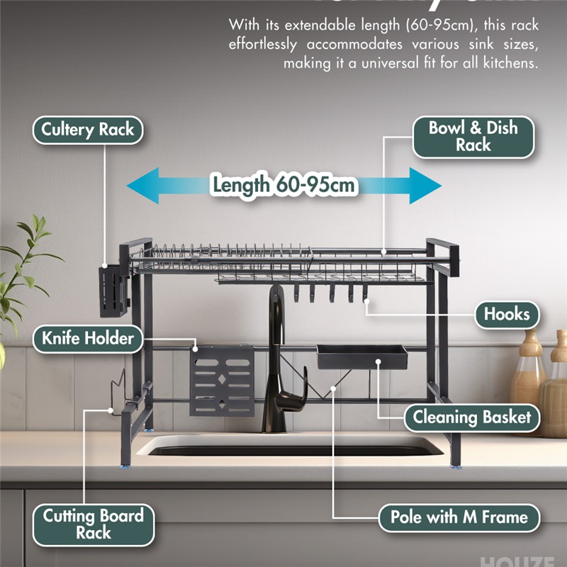 Adaptable Size for Any Sink: With its extendable length (60-95cm), this rack effortlessly accommodates various sink sizes, making it a universal fit for all kitchens.
