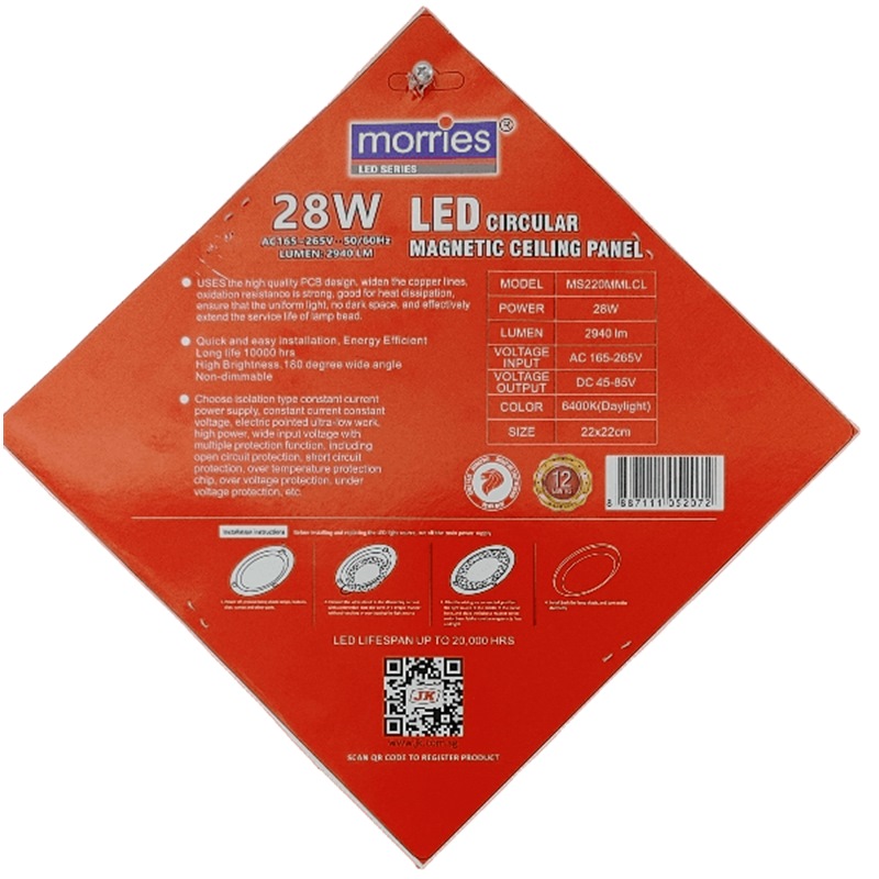 MORRIES 2940 LUMEN 28W LED CIRCULAR MAGNETIC CEILING PANEL MS220MMLCL