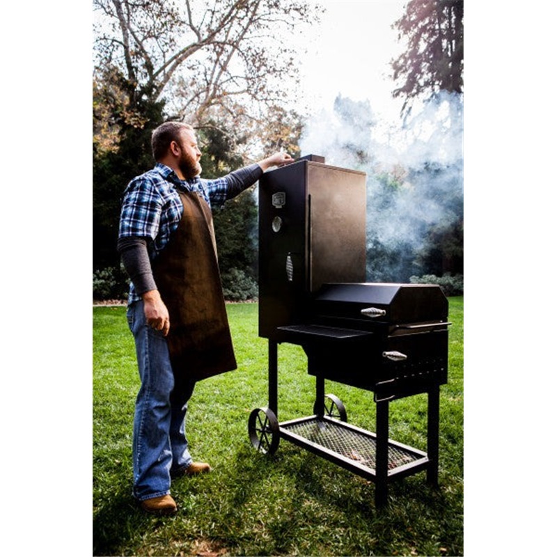 The unique design of the Oklahoma Joe's® Bandera® Vertical Offset Smoker gives you smoking versatility and maximizes food capacity. The vertical design enables efficient airflow through the smoke chamber. Built with durability in mind, this smoker is constructed with high-temperature, heavy-gauge steel and is equipped with nearly 1,000-square-inches of smoking and grilling capacity.