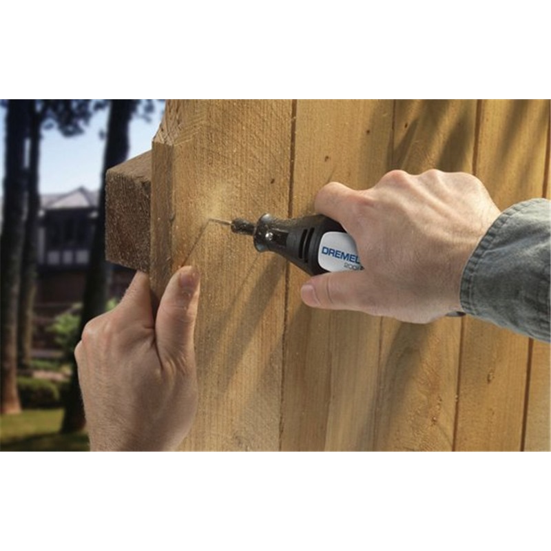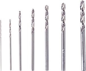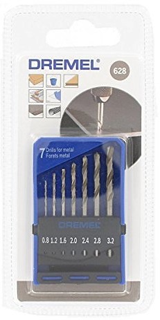The Dremel precision drill bit set (628) contains 7 drill bits for drilling into wood or soft metal.
