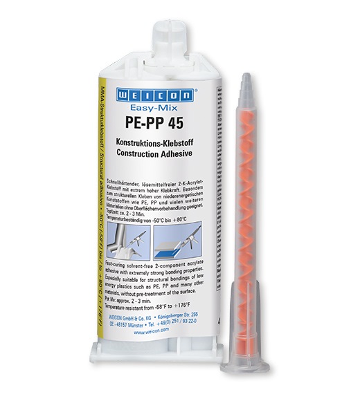 WEICON Easy-Mix PE-PP 45 is a two-component construction adhesive on the basis of methyl acrylate.