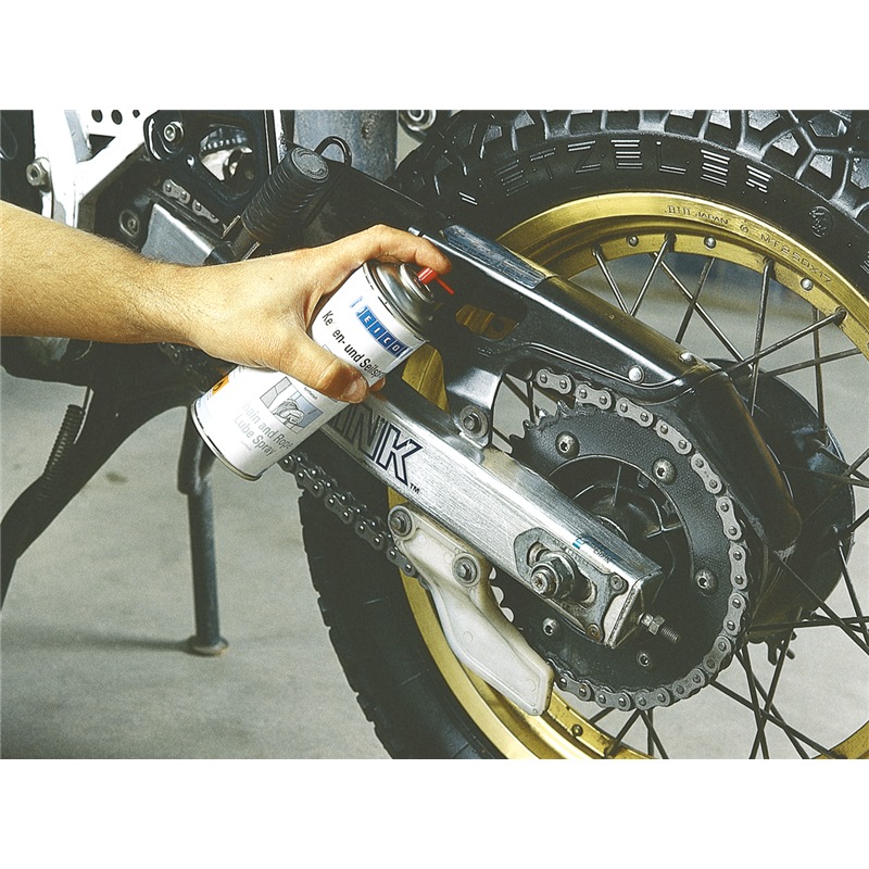 Chain and Rope Lube Spray is particularly strongly adherent, has excellent creeping properties, suppresses noise, repels water and prevents elongation, friction and wear.