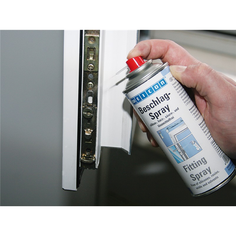 WEICON Fitting Spray can be used for the lubrication, servicing and maintenance of fittings on windows, doors, gates, garages, tilt-and-turn and shear fittings in many industrial applications.