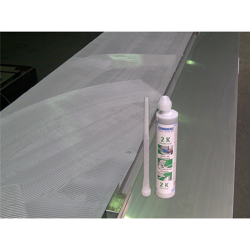 Flex 310 M 2 K is a strong 2-component system on a hybrid polymer basis which enables fullsurface bonding of larger parts and which can be used to fill gaps of up to 10 millimetres.