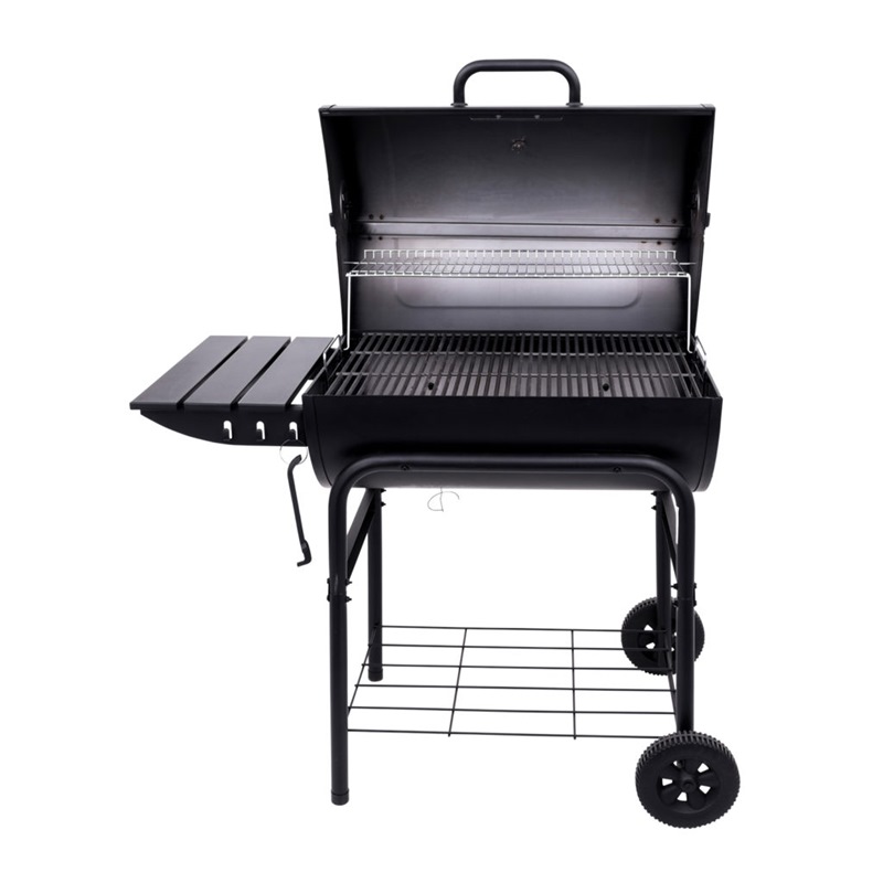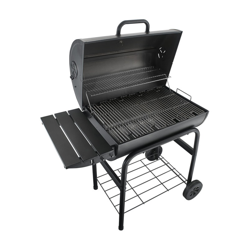 With features including a side shelf that provides plenty of space for prep work and a slide out charcoal drawer that allows for easy fuel access and clean-up, the quality materials and sturdy construction of the American Gourmet ensures that your grill is made to last.