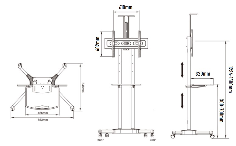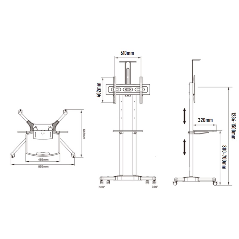Home » Household Products » TV Mounts & TV Stands » QUEENIE KLC-121 TROLLEY STAND SINGLE METAL SHELF 32" - 58" TILTING 45KG
