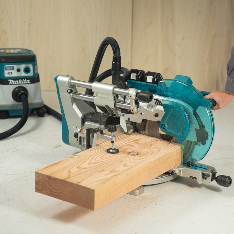 High power delivered by 36V (18Vx2) DC Brushless motorenables to cut as fast as AC slide compound miter saw.