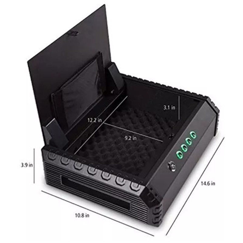 Whisper quiet hardware, Pry-resistant top lid design, Single handed access