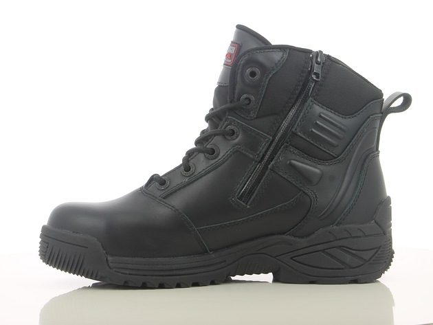 The mid-cut TROOPER is an all-round tactical boot designed for demanding environments. This metal-free, waterproof safety shoe is crafted with a heat-resistant outsole that can withstand up to 300°C and integrated with S3 and SR slip resistance, it guarantees superior protection and grip on any surface. The lightweight composite toecap shields you from falling objects, while its body posture pain relief design reduces strain. With its unique ability to prevent static sparks, keep feet cool and fresh, and resist penetration from sharp objects, the Trooper ensures your feet stay dry and safe all day.