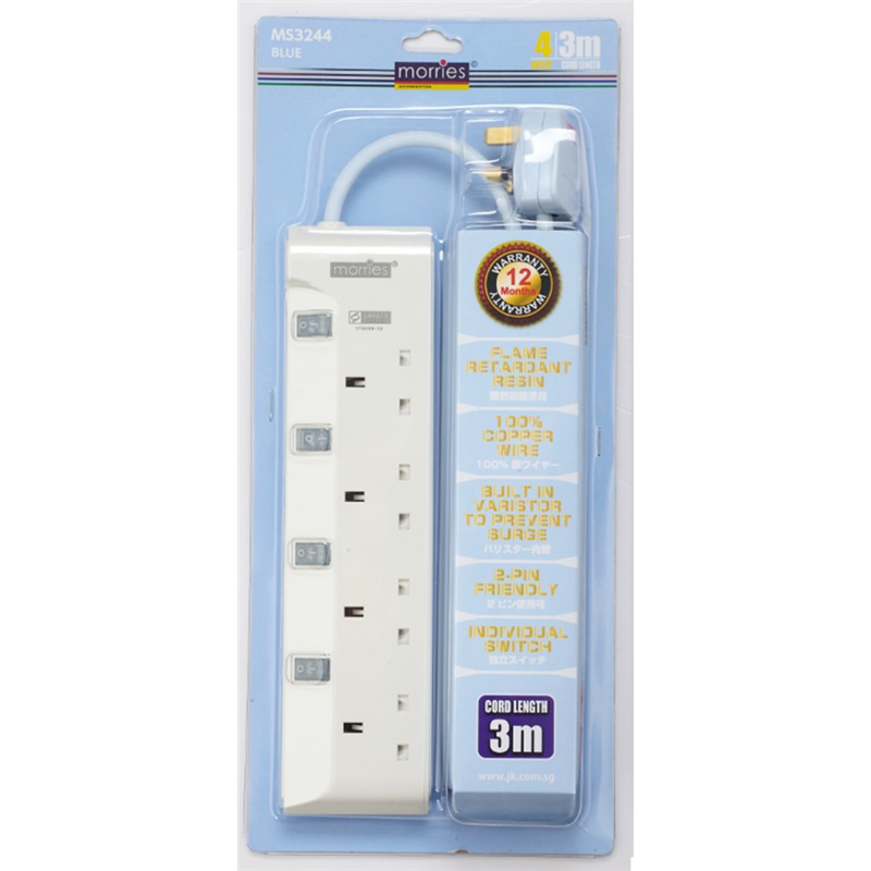 MORRIES MS 3244B (BLUE) 4WAY EXTENSION CORD 3M W/ SURGE PROTECTOR