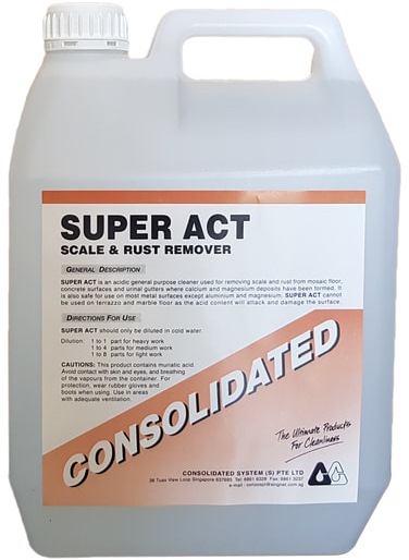 Home » Cleaning Supplies » Metal Polish & Rust Removers » CONSOLIDATED SUPER ACT - RUST SCALE REMOVER 5L