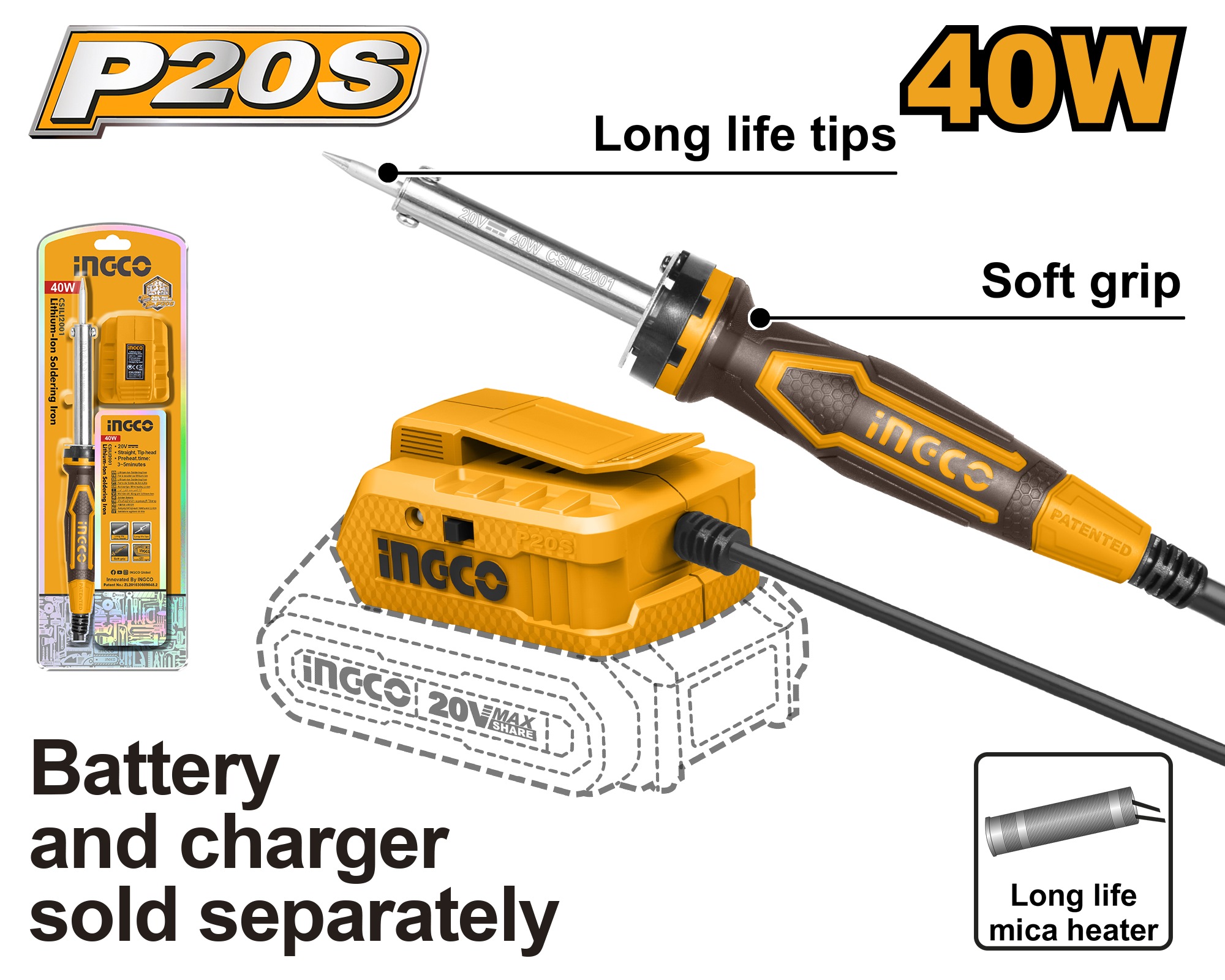 INGCO 20V LI-ION SOLDERING IRON 40W CSILI2001 (BARE UNIT)
