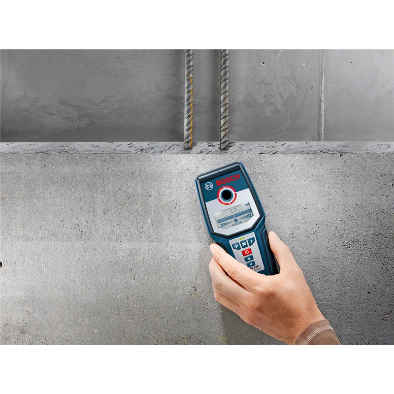 Reliable and calibration free Detection depth metal up to 12cm; live wire up to 5cm Dynamic automatic zoom scale for precise detection of objects with centre-finder function 3 colour LED ring for added safety Audible alarm gives additional warning