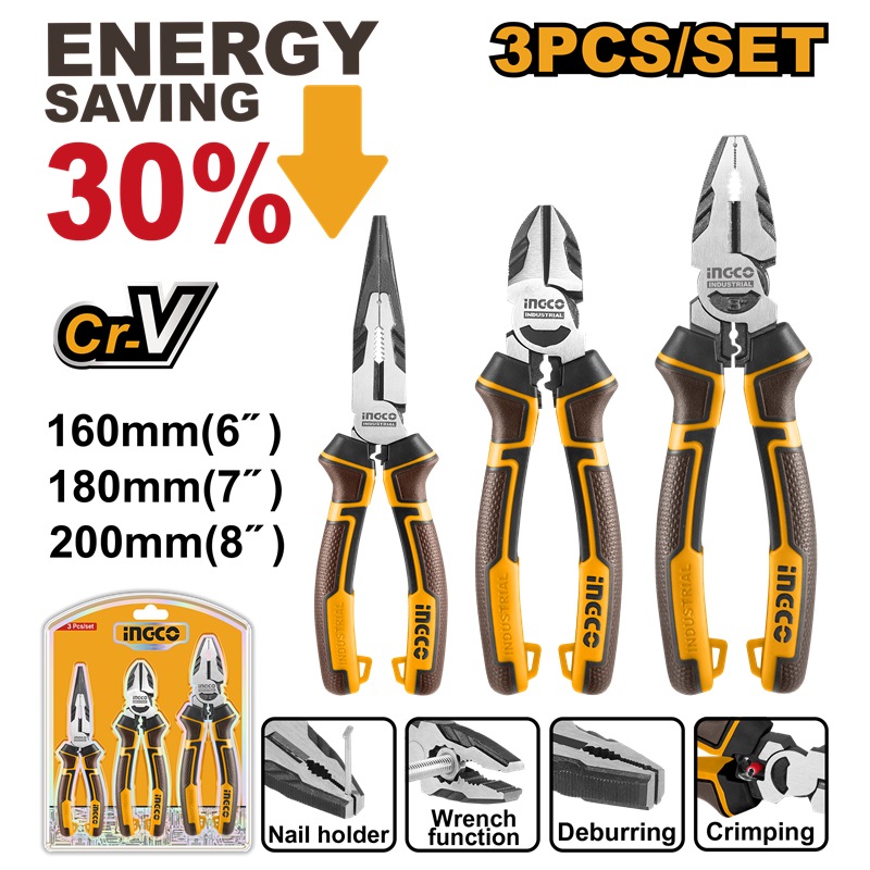 Home » Hand Tools » Hand Tool Sets & Accessory Kits » INGCO 3PCS HIGH LEVERAGE CR.V PLIER SET HKHLPS2831