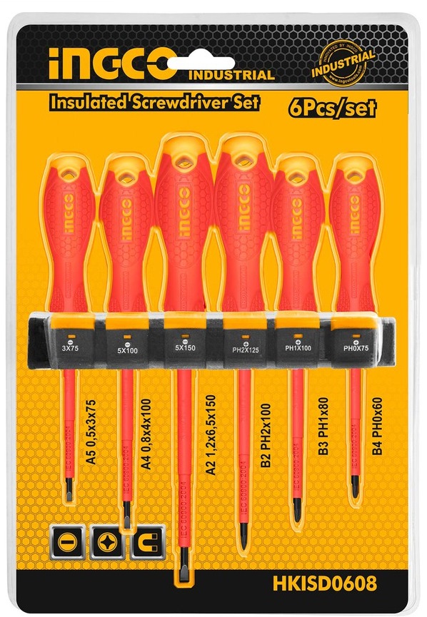 Home » Hand Tools » Hand Tool Sets & Accessory Kits » INGCO 6PCS INSULATED SCREWDRIVER SET HKISD0608