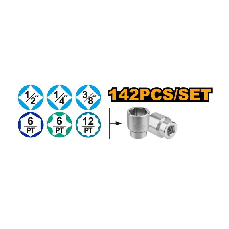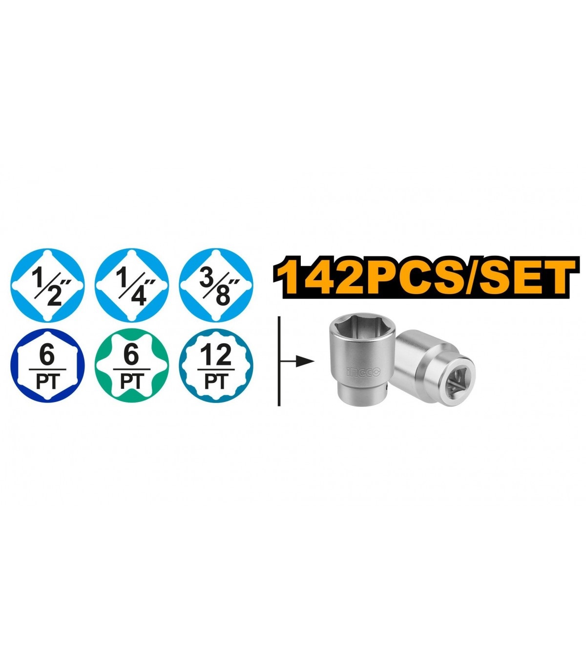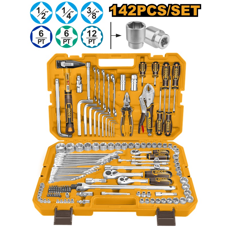 Home » Hand Tools » Hand Tool Sets & Accessory Kits » INGCO 142PCS COMBINATION TOOL SET HKTHP21421