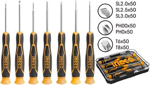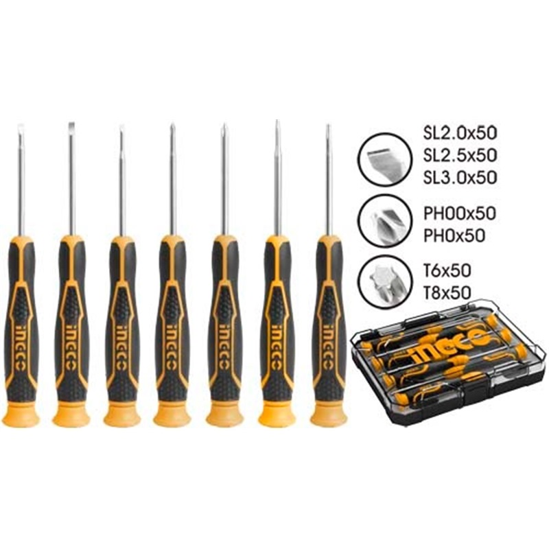 Home » Hand Tools » Hand Tool Sets & Accessory Kits » INGCO 7PCS PRECISION SCREWDRIVER SET HKSD0718