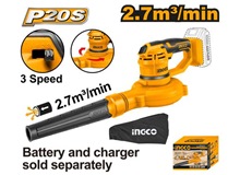 INGCO 20V ASPIRATOR BLOWER MAX VOLUME: 2.7M3/MIN CABLI2001 (BARE UNIT)