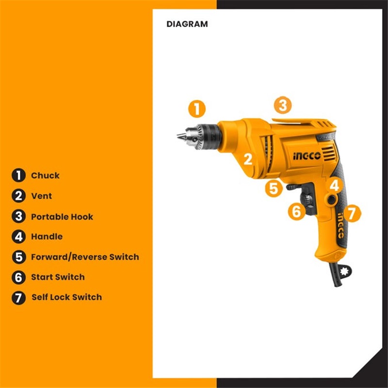 Home » Power Tools - Corded » Corded Drills, Impact Drivers & Wrenches » INGCO ROTARY DRILL 6.5MM 450W ED4508
